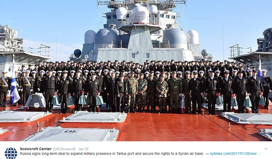 Moskva i Damask potpisali su sporazum o modernizaciji punkta za pružanje materijalno-tehničke podrške u Tartusu. Sporazum je potpisan na 49 godina sa automatskim produženjem na period od 25 godina, osim ako jedna od strana najmanje godinu dana ranije ne obavesti drugu da želi da raskine sporazum.