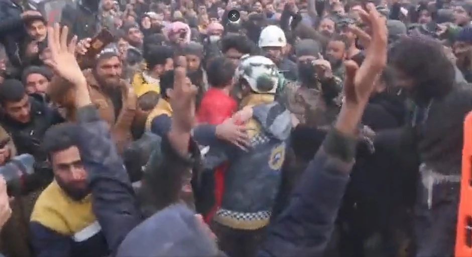 "Pravo čudo...zvuci radosti grle nebo... radost neverovatna. Čitava porodica spasena je ispod ruševina svoje kuće danas popodne, u utorak, 7. februara, u selu Bisnia, zapadno od #Idliba", naveli su Beli šlemovi.