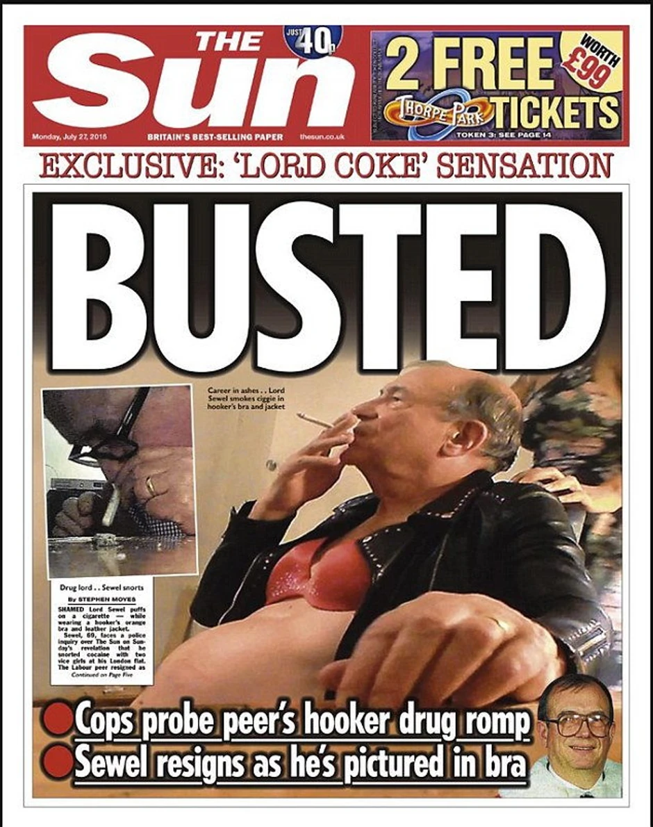 Baronu Džonu Suelu, koji je uhvaćen kako šmrče kokain u društvu prostitutki, sinoć je zatraženo da odstupi iz Doma lordova britanskog parlamenta.
