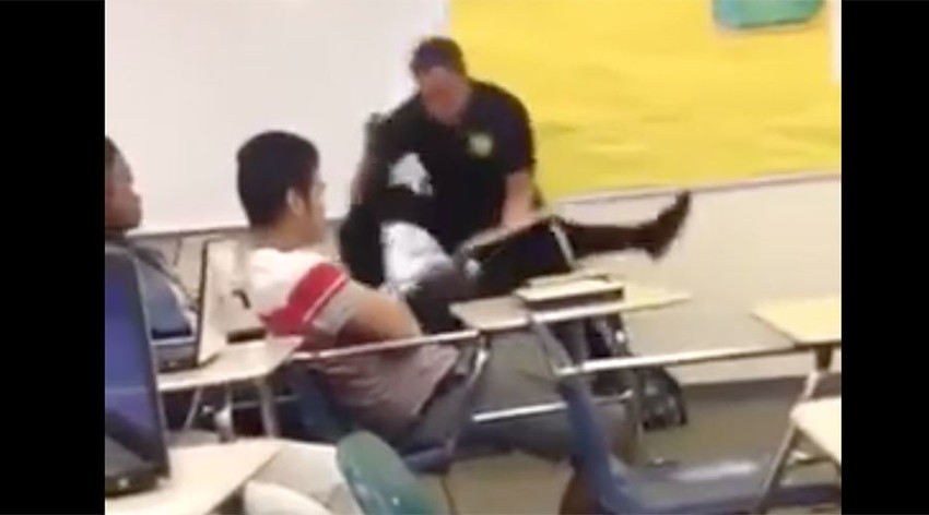 Školski policajac Južne Karoline, identifikovan kao Ben Filds, snimljen je dok je pokušavao da uhapsi tamnoputu učenicu u srednjoj školi Spring Valej.