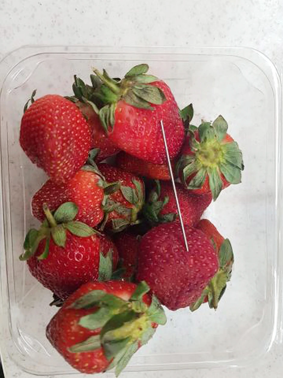 U javnosti se pojavio prvi slučaj čoveka koji je prebačen u bolnicu zbog bolova u stomaku nakon konzumacije jagoda, a više od stotinu navodnih incidenta je prijavljeno.