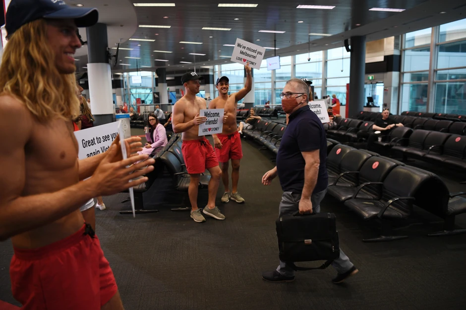 Televizija ABC objavila je slike slavljeničkog dočekivanja putnika iz Melburna na sidnejskom aerodromu. Ta linija Sidnej-Melburn bila je najprometnija pre izbijanja epidemije.