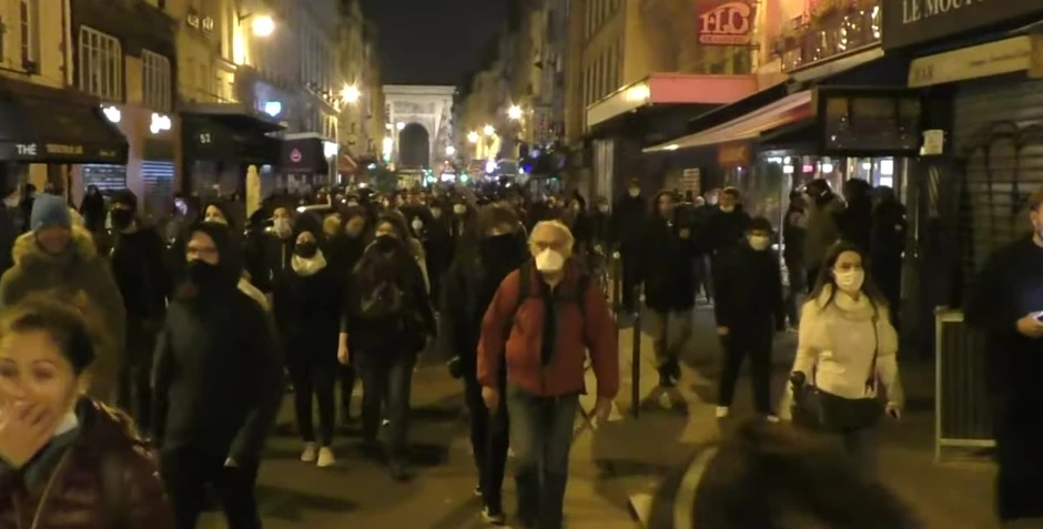U jeku policijskog časa koji je večeras u Parizu zbog novih mera protiv pandemije korona virusa stupio na snagu, organizovan je neprijavljeni protest protiv novih ograničenja.