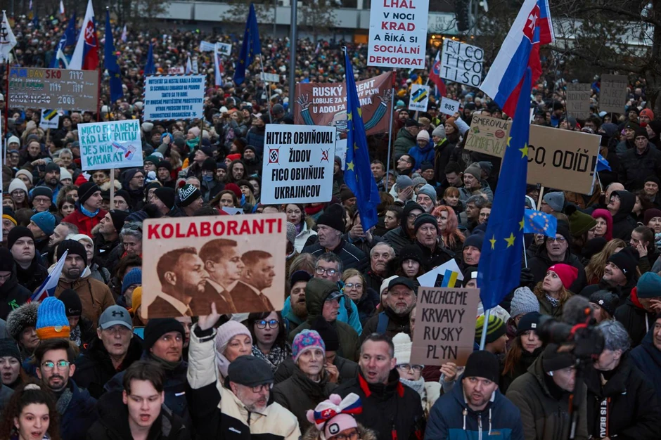 Pre dve nedelje više desetina hiljada građana okupilo se na antivladinim protestima širom Slovačke, tražeći ostavku premijera, a seriju protesta pod nazivom "Slovačka je Evropa", organizovala je građanska inicijativa "Mir za Ukrajinu".