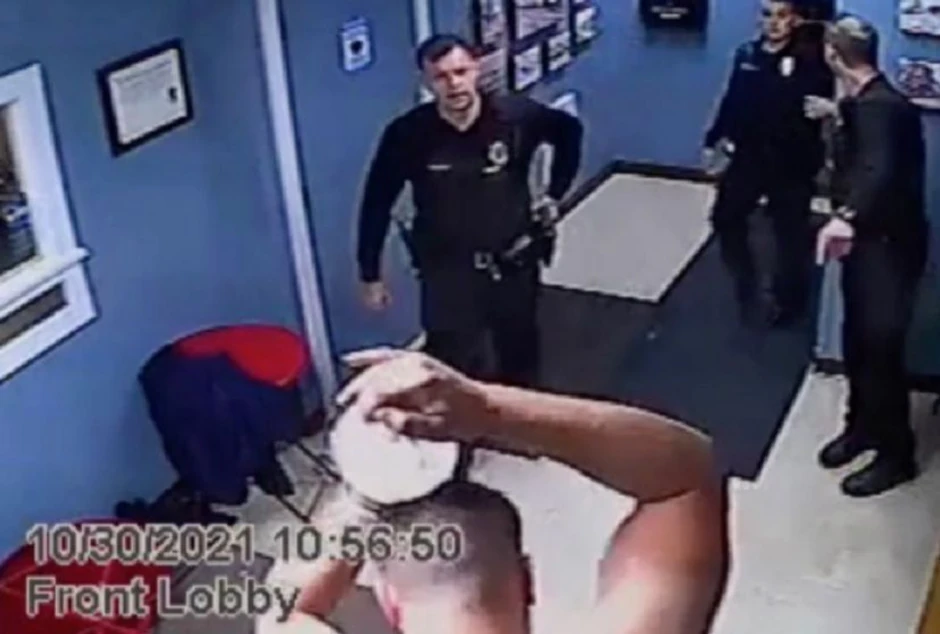 Na snimku se vidi kako Džons korača po predvorju policijske stanice oko 10 minuta nakon što je razgovarao sa nekoliko policajaca 30. oktobra.