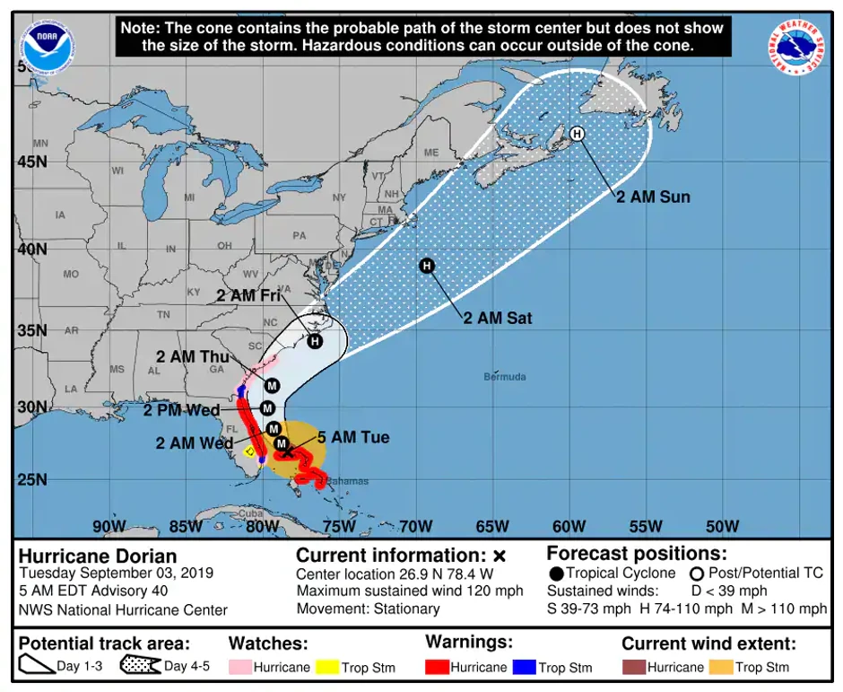 Uragan Dorijan zadržao se na Bahamima duže nego što su meteorolozi očekivali i tek u utorak popodne po srednjevropskom vremenu počeo pomalo da se kreće ka istočnoj američkoj obali.