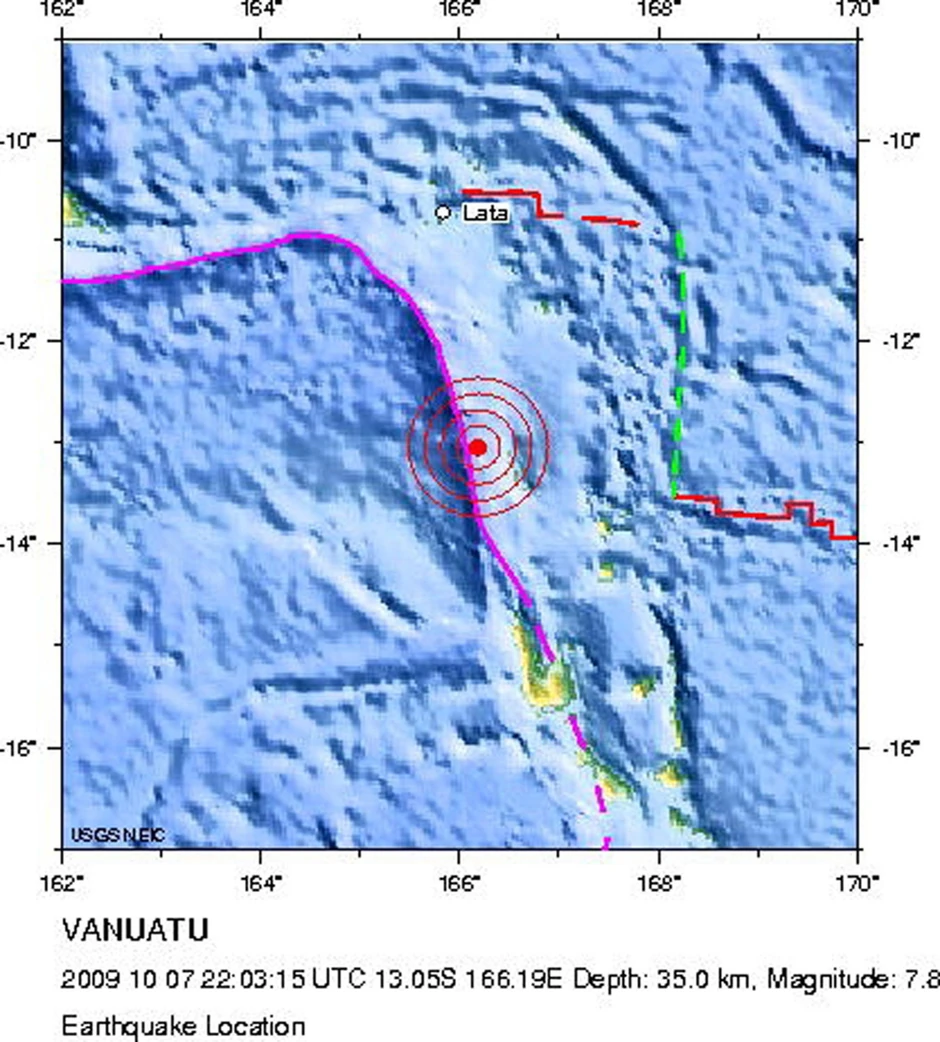 Vanuatu se nalazi na takozvanom pacifičkom vatrenom prstenu, luku trusnih i vulkansih zona koji se proteže od Južne Amerike preko Aljaske do južnog Pacifika.