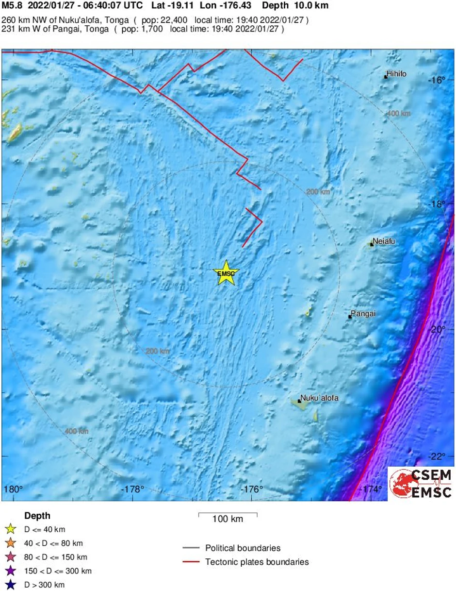 Epicentar zemljotresa bio je 219 kilometara severozapadno od grada Pangai, na dubini od 14,5 kilometara.
