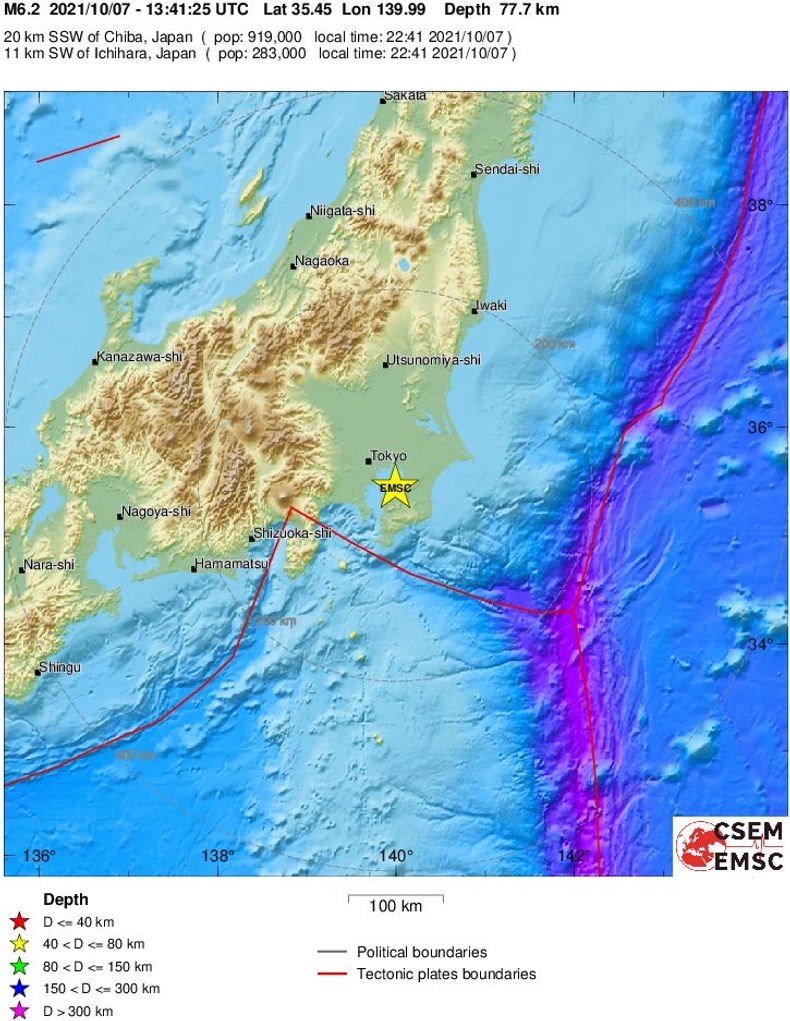 Na sajtu volcanodisscovery.com objavljeno je da je jačina potresa bila 5,8 stepeni, a da je epicentar bio je 58 kilometara severoistočno od Tokija na dubini od 71 kilometar.