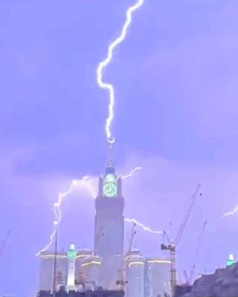Na društvenim mrežama objavljeni su snimci na kojima se vidi kako grom udara u vrh Sahat-kule osvetlivši celu Meku.