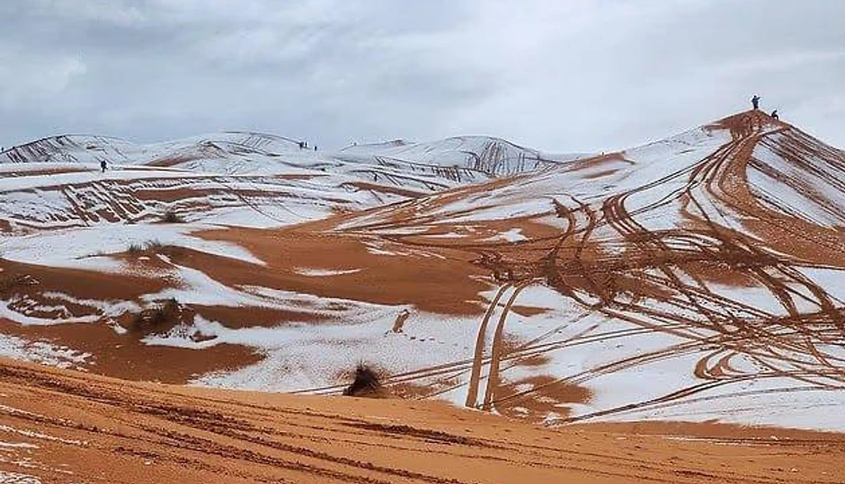 Neobičan prizor mogao se videti u alžirskom gradu Ain Sefra koji se naziva i "kapija Sahare". Sneg je prekrio čuvene narandžaste dine Sahare, stvarajući fascinantnu kombinaciju boja. Temperature su pale ispod nule, što je omogućilo formiranje tankog sloja snega, koji je oduševio lokalno stanovništvo.