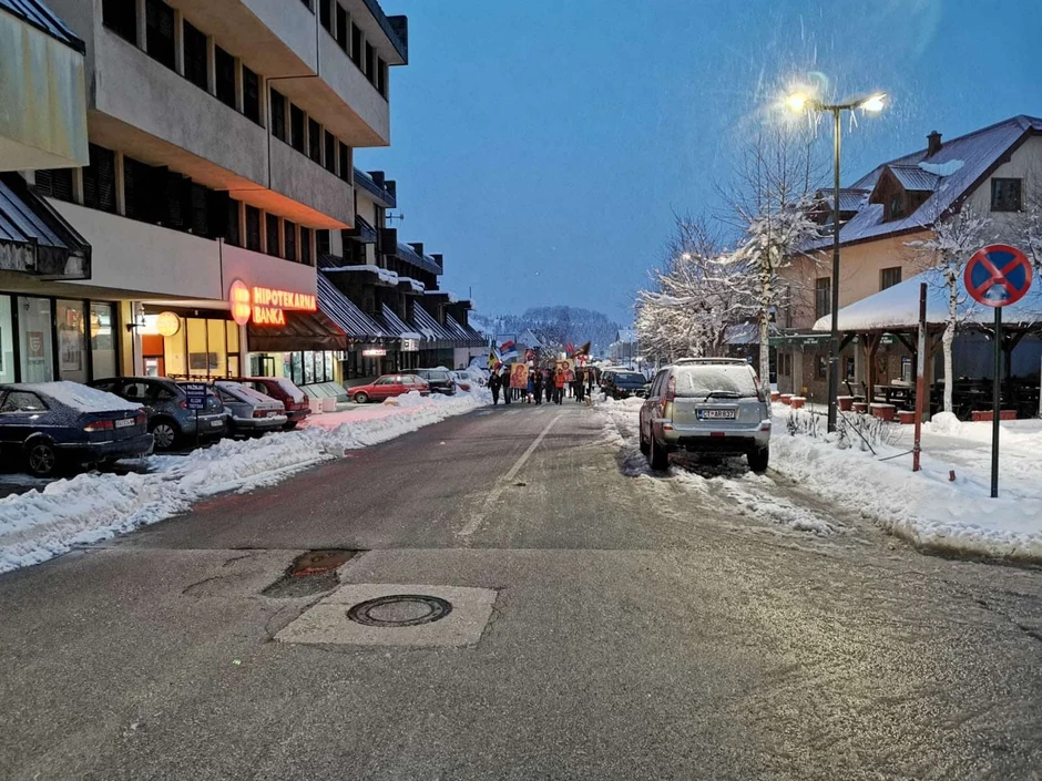 Ogromna količina snega i leda obrušila se sa krova zgrade u centru Žabljaka u Crnoj Gori, na ženu i dete, a zahvaljujući reakciji građana i policije, oni nisu zadobili povrede.