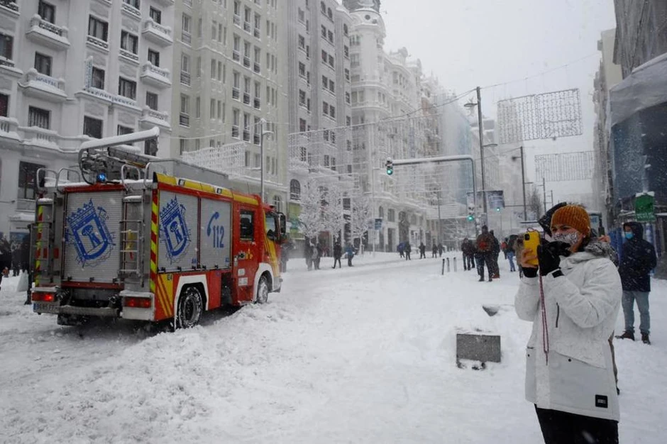 Za to vreme neki žitelji prestonice skijama su se spuštali niz prometnu ulicu Gran Vija, dok su drugi vozili snoubord ili se gađali grudvama, prenosi Rojters.
