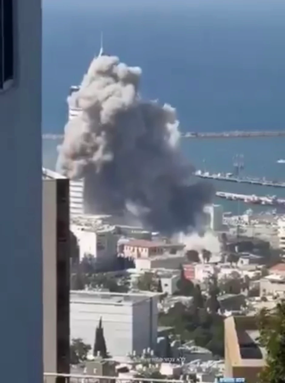 Na snimcima se takođe vidi i veliki oblak dima koji se diže iznad zgrada u Haifi. Čuju se i eksplozije.