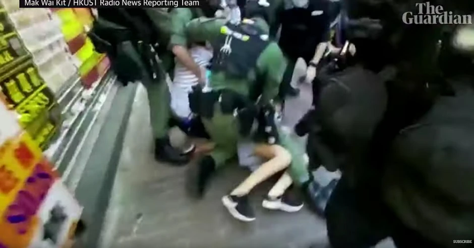 Na snimku koji je prenet društvenim mrežama i honkoškim medijima vidi se kako policija ograđuje grupu ljudu među kojima je devojčica, koja se sklonila sa strane i pokušala da pobegne, preneo je “Gardijan”.