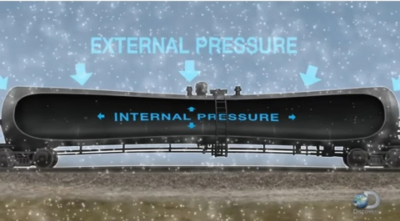 Tim “Mitbastersa” hteo je da simulira imploziju u ogromnom vagonu cisterni, dugom 20, a visokom 4,5 metara, napravljenom od čelika debljine 1,27 centimetra. Vagon je namenjen da sačuva stvari kao što su gorivo čak i u slučaju da isklizne iz šina.