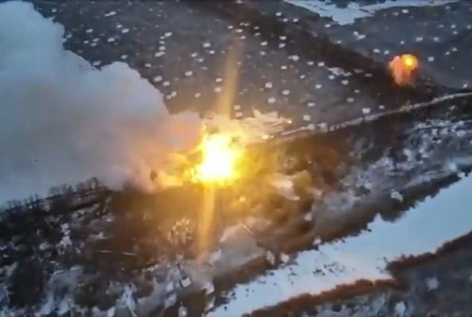 Neverovatan snimak kruži internetom, a navodno pokazuje trenutak kada je ruski termobarički raketni bacač uništen u seriji eksplozija na liniji fronta u Ukrajini.