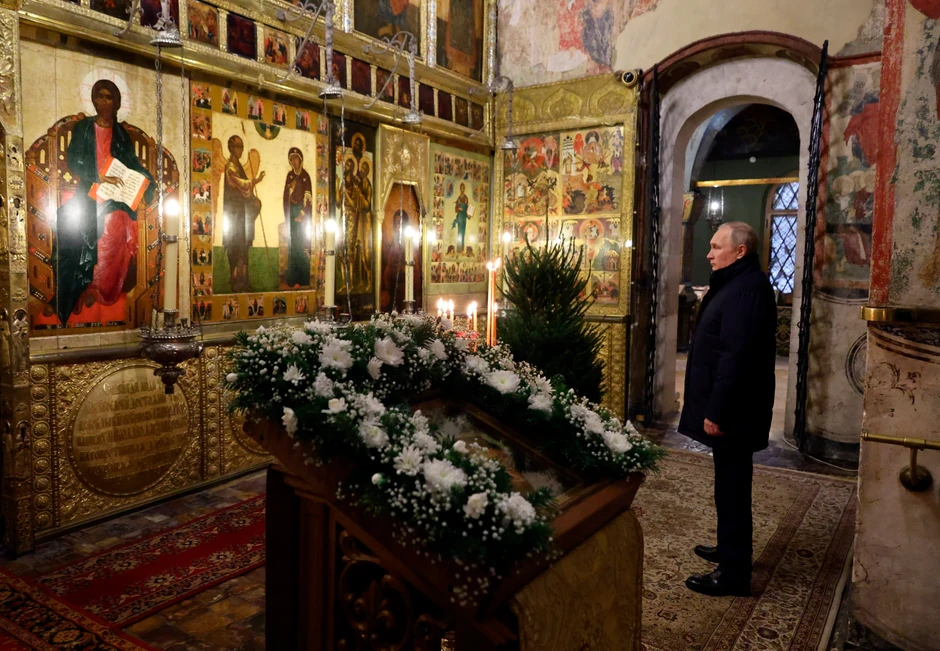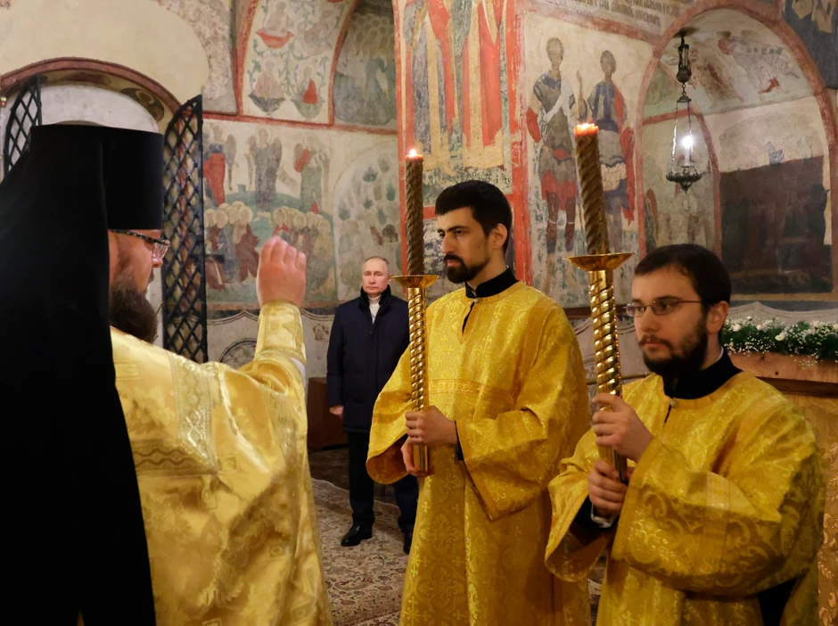 Snimak zamišljenog i usamljenog ruskog predsednika Vladimira Putina u potpuno praznom Sabornom hramu Blagoveštenja u Kremlju tokom božićne liturgije obišao je svet. U hladnom hramu (Putin je u kožnoj bundi) nalaze se samo sveštenik, za koga neki mediji tvrde da je verovatno pripadnik FSB, i predsednikov zvanični fotograf i snimatelj državne televizije Rusija 1, i to na pristojnoj udaljenosti. I niko drugi.