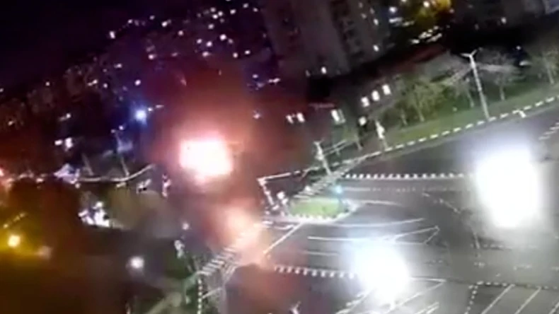 Zatim se vidi gusti dim, a automobili više ne prolaze raskrsnicom. Onda je usledila velika detonacija. Prema onom što se može videti iz snimka, od trenutka udara do detonacije prošlo je neko vreme.