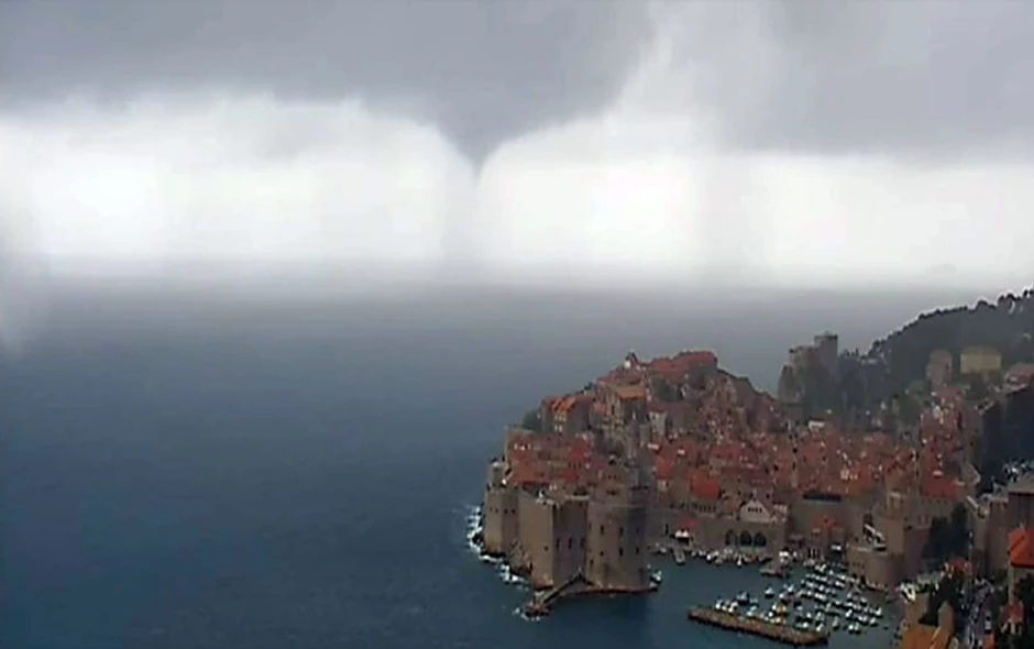 U Dubrovniku je jutros snimljena morska pijavica, odnosno atmosferski vrtlog, koji se pojavljuje kod izrazito nestabilne atmosfere i tretira se kao manji tornado. Na sreću, pijavica nije prešla nad kopno.