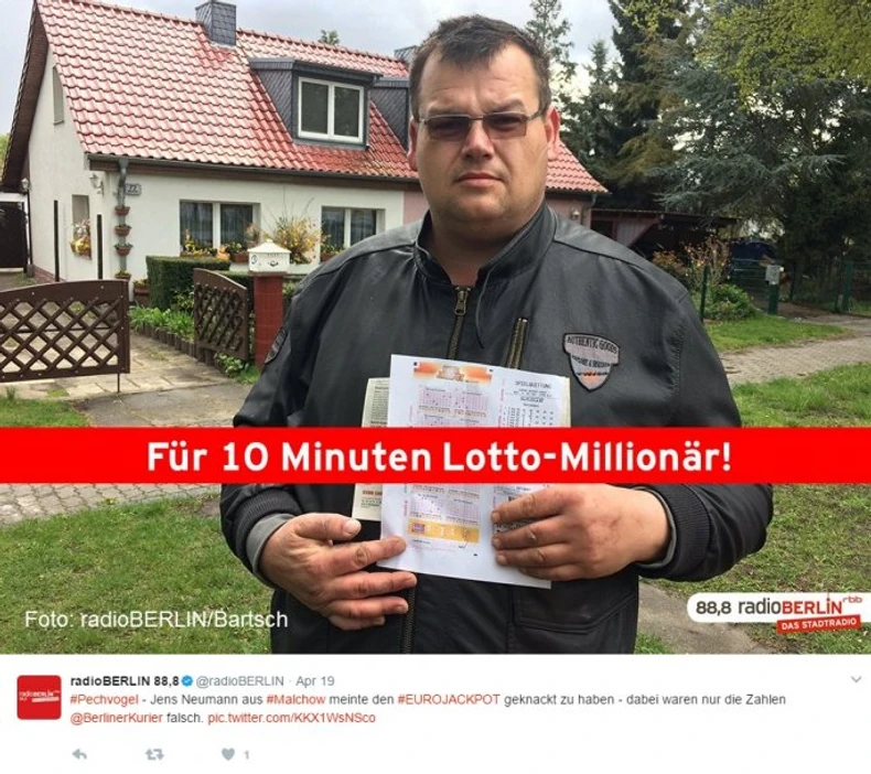 Nemac Jens Numan (43) i njegova majka svake nedelje igraju loto "Eurojackpot", a nedavno su otvorili novine i videli da su dobili 60 miliona evra! Vrlo brzo usledio je hladan tuš.