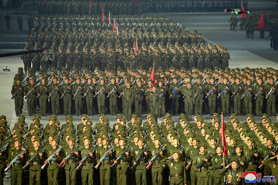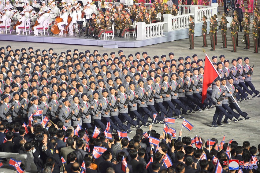 Severna Koreja ovih dana proslavila je 73. godišnjicu svog postojanja noćnom vojnom paradom u prestolnici, pišu državni mediji, prenoseći fotografije parade sa sudionicima u narančastim zaštitnim odelima, ali bez balističkih raketa.