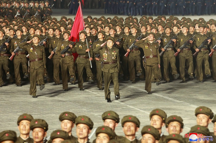 Severna Koreja nije prikazala nijedan balistički projektil, ali su zato paradom održanom tokom noći marširali vojnici i radnici u zaštitnim, narandžastim hemijskim kombinezonima.