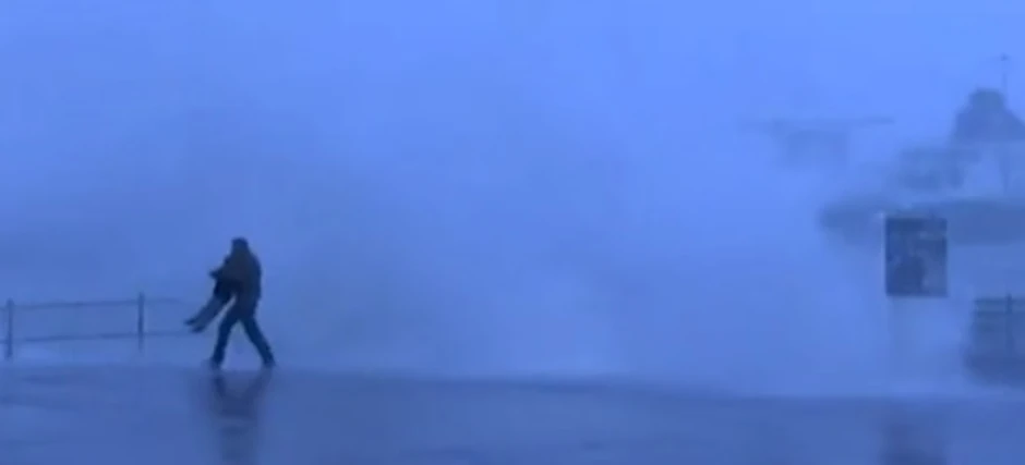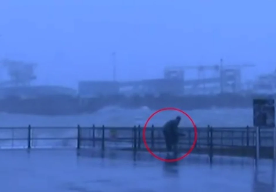 Roditelj i dete su bili mokri do gole kože, ali su srećom izbegli povrede. Na drugim snimcima vide se ljudi kako prkose oluji, rizikujući svoje živote da fotografišu talase, nakon čega beže u zaklon.