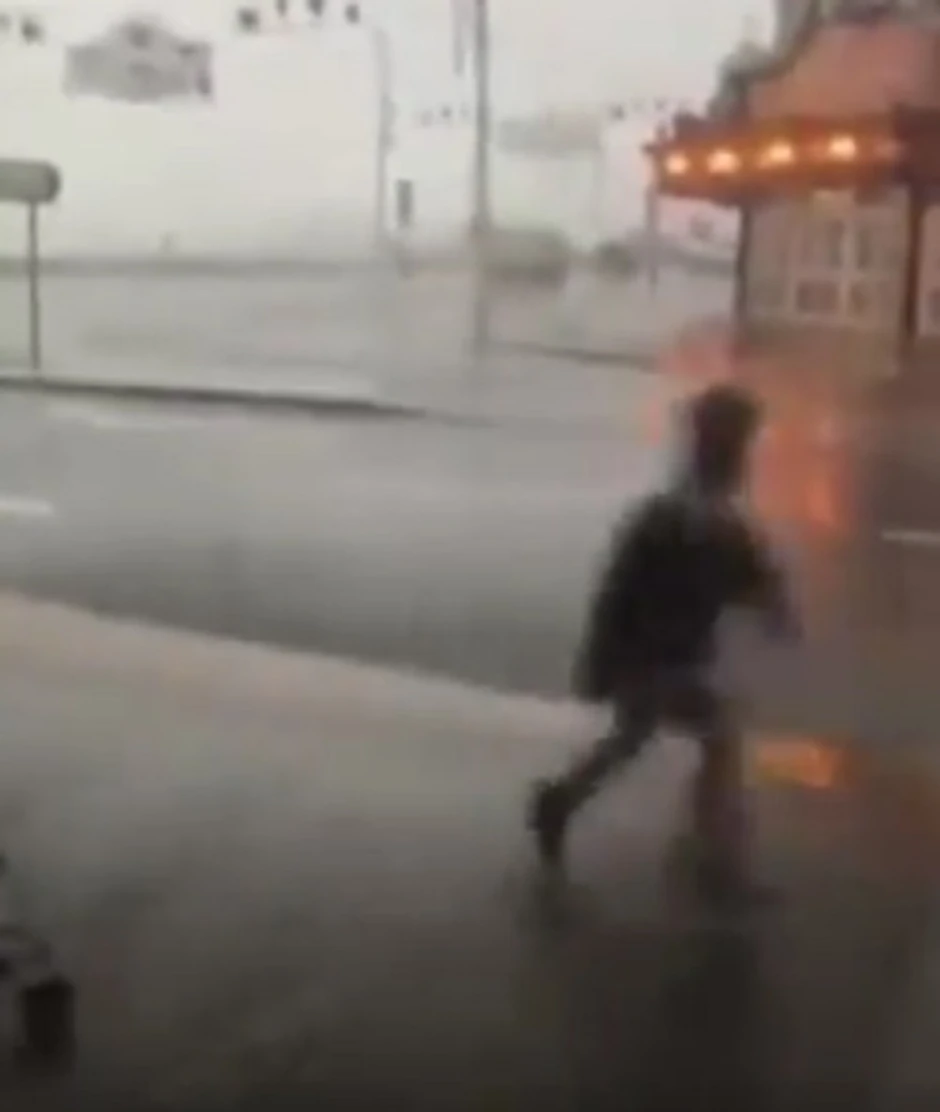 Na snimcima objavljenim na društvenim mrežama vidi se kako dvoje dece sa jednom odraslom osobom trče po ulici u Blekpulu bežeći od udara vetra.