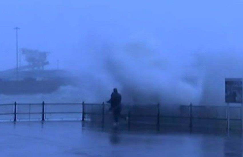 Roditelj i dete su stajali pored ograde uz obalu luke Dover posmatrajući talase dok vetar šiba oko njih, nakon što su ignorisali upozorenja na oluju Kjaru, preneo je "Dejli mejl".