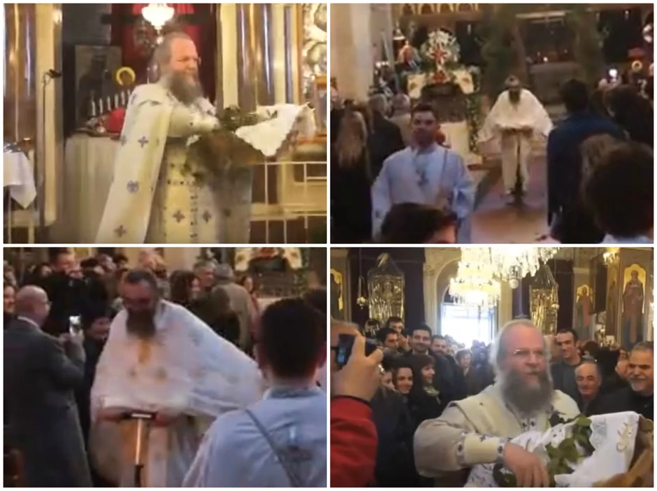 Na brojnim snimcima objavljenim na društvenim mrežama vidi se kako on na neobičan način služi liturgije u crkvi Panagia Evangelistria.