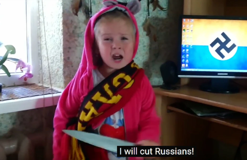 Jeziv snimak koji prikazuje trogodišnju devojčicu iz Ukrajine kako preti da će "iskasapiti Ruse" osvanuo je na internetu.