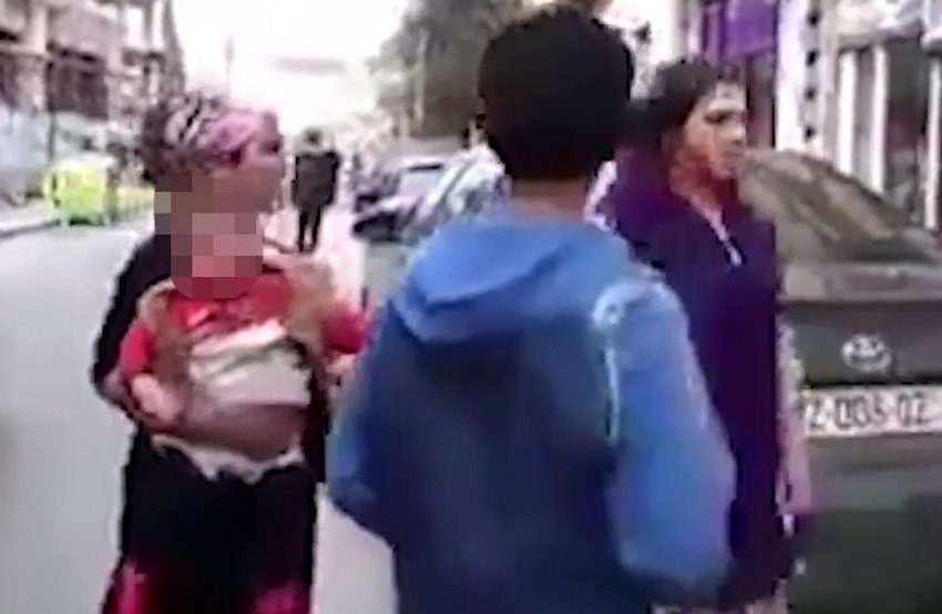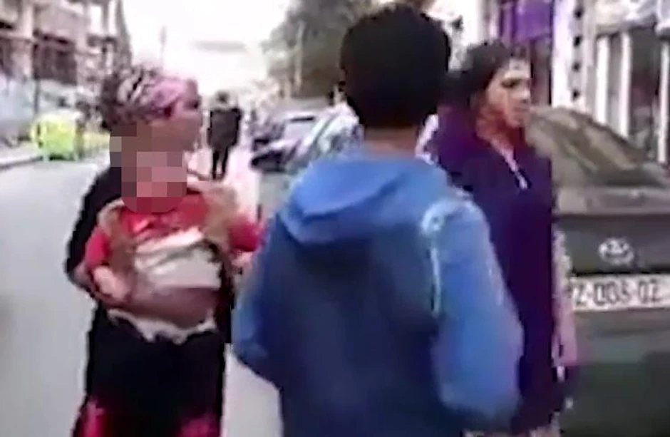 Žena stara tridesetak godina pljunula je čoveka koji je prošao pored nje. Nakon toga joj je drugarica pružila dete, a ona ga je bez oklevanja zgrabila i upotrebila kao oružje.