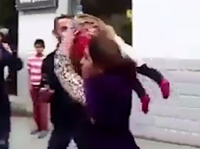 U napadu besa, jedna žena je zgrabila malog dečaka za vrat, a zatim njime počela da tuče čoveka, koga je prethodno pljunula.