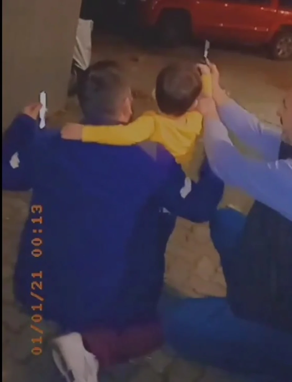 Video, koji traje pet sekundi, prikazuje kako malo dete dva puta puca iz pištolja koji drži uz pomoć jednog muškarca, dok drugi sve to snima mobilnim telefonom.