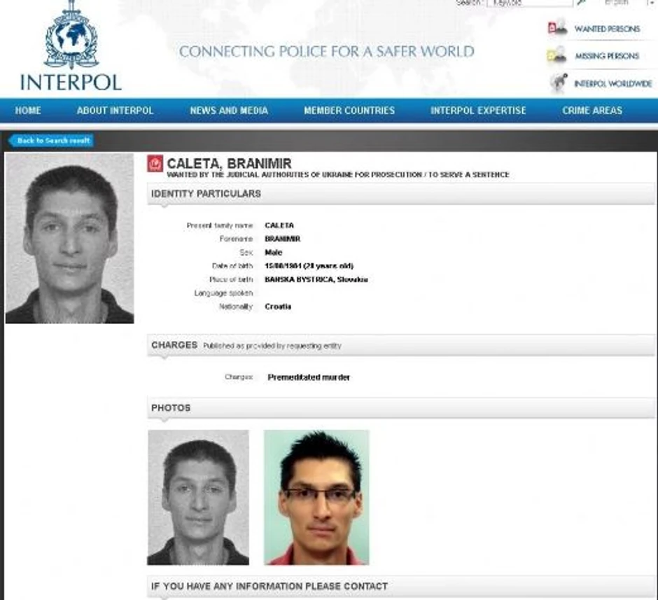 Branimir Čaleta, 35-godišnji konobar iz Vinovca u opštini Marina punih je šest godina mirno živeo i sezonski radio u Hrvatskoj iako je još u oktobru 2013. godine ukrajinski Interpol za njim izdao međunarodnu poternicu zbog optužbe za ubistvo s predumišljajem njegove tadašnje devojke Gane Kitaeve, 36-godišnje menadžerke u osiguravajućem društvu iz Dnjepropetrovska, piše Slobodna Dalmacija.