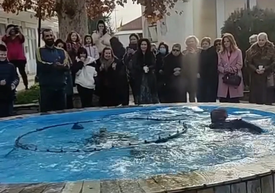 Naime, kako se vidi na snimku objavljenom na instagram profilu "grckainfo", plivač je za časni krst, umesto u reku ili more, zaronio ni manje ni više, nego u fontanu.
