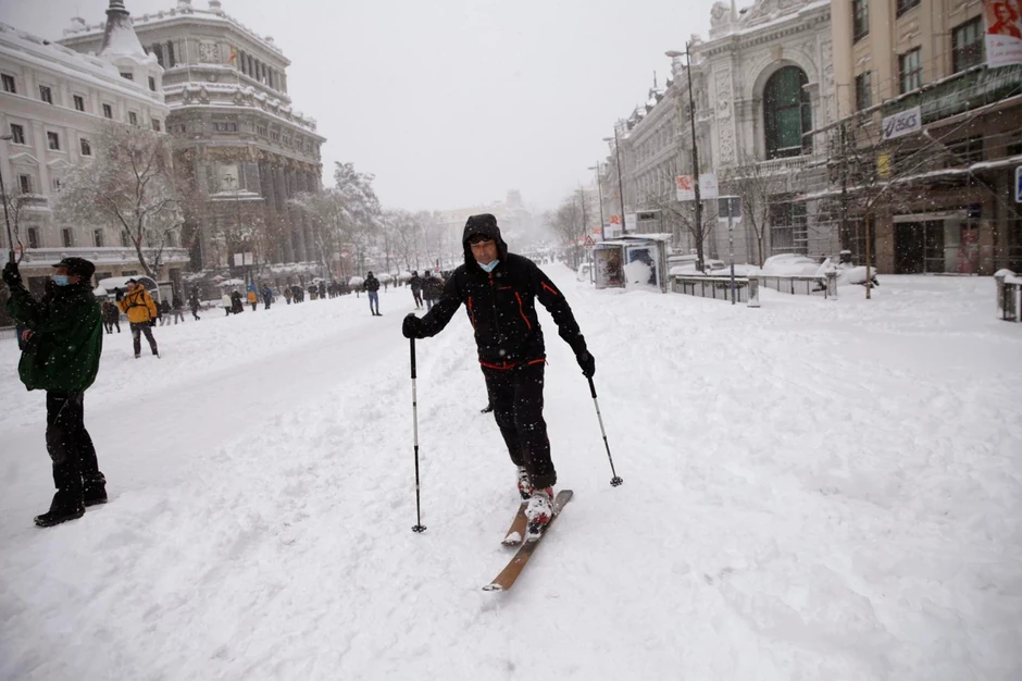 Sneg je, piše španski sajt "Thelocal", čuveni madridski trg Puerta de Sol pretvorio u skijalište. Na Tviteru je objavljen i snimak muškarca na sankama koje vuče pet pasa na inače prometnoj saobraćajnici.