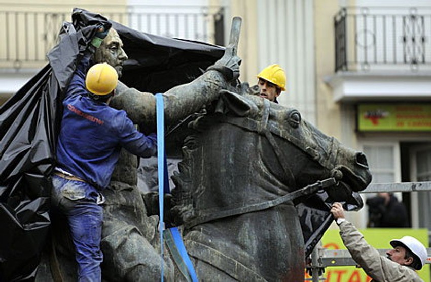 "Veliki broj statua završio je u vojnim objektima". Stari Frankisti sve su samo ne odustali od borbe da se sačuvaju simboli na diktatora, naročito od kada je socijalistička vlada Hozea Luisa Sapatera izglasala zakon 2007. godine da oni budu uklonjeni. Poslednja odluka o tome šta sve treba da bude uklonjeno ostaje u rukama grada i gradskih skupština, ali pojedini desničarski gradonačelnici odbijaju da promene imena ulica i da uklone ploče sa Frankovim imenom.