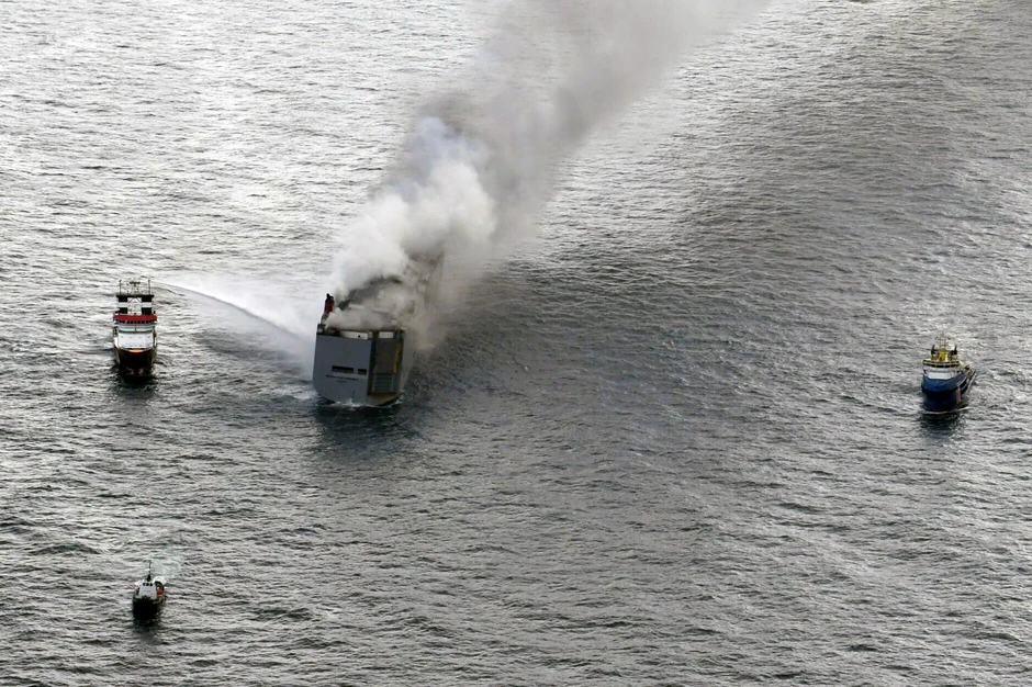 Spasilačke ekipe počele su danas da vuku prema luci teretni brod sa hiljadama automobila koji gori već danima, saopštili su lokalni zvaničnici.