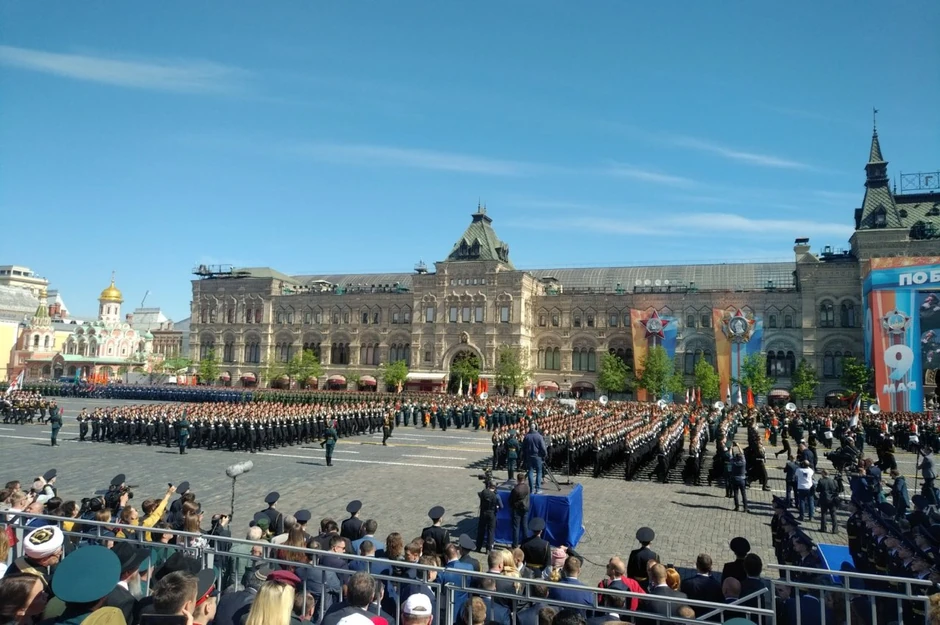 Prethodno, Crvenim trgom prodefilovao je puk kopnene vojske Oružanih snaga Rusije, paradna jedinica žena-vojnika, puk Vojno-mornaričke flote Rusije, zatim puk Vazdušno-kosmičkih snaga Rusije i mnogi drugi rodovi ruske vojske, a prvi put Crvenim trgom koračali su i paradni defile jedinice Vojne akademije za protivvazdušnu odbranu „Maršala Vasiljevskog“.
