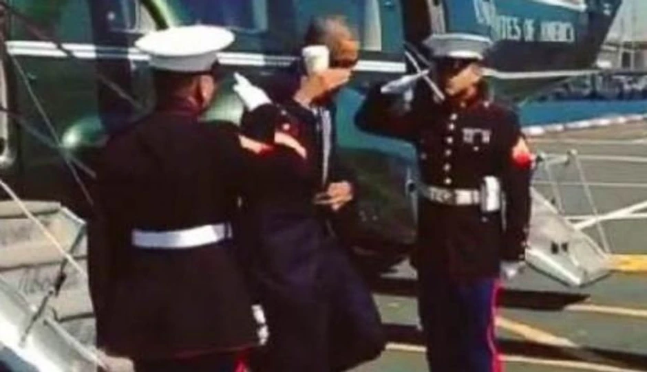 Međutim, kada je američki predsednik Barak Obama sleteo u Njujork on je iz svog predsedničkog hilikoptera, “Marine One”, izašao sa naočarima na glavi, i sa zakasnelom reakcijom opozdravio dva marinca rukom u kojoj je držao šoljicu sa kafom.