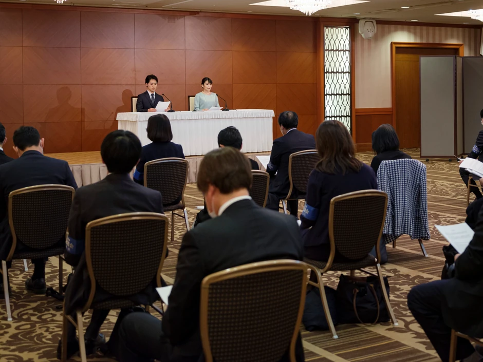 Carska institucija je ranije ovog meseca pojasnila da se ceremonija venčanja, banket prijema i drugi rituali neće održatI. Iako sklapanje braka između običnog građanina i pripadnika carske porodice nije neuobičajeno u Japanu, izostanak pompe za kraljevsko venčanje jeste.