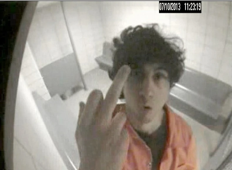 Džohar Carnajev, Čečen optužen za bombaški napad na Bostonskom maratonu 2013. godine, kada su poginule tri osobe, nedugo nakon hapšenja nije pokazivao znake kajanja. Štaviše, on je jasno pokazao šta misli pokazavši srednji prst policiji.
