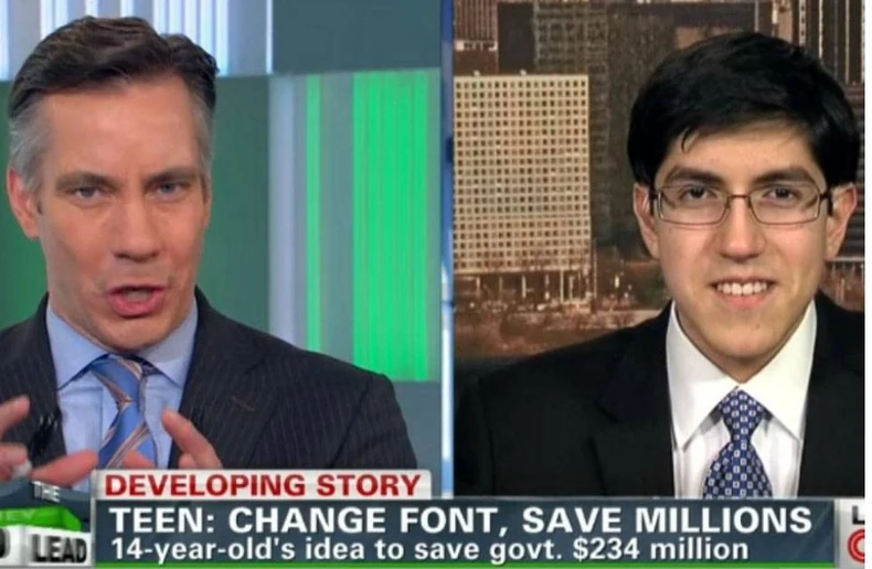 Četrnaestogodišnji učenik je smislio kako bi američka vlada mogla da uštedi 400 miliona dolara, i to samo kada bi promenila font koji koristi u zvaničnim dokumentima.