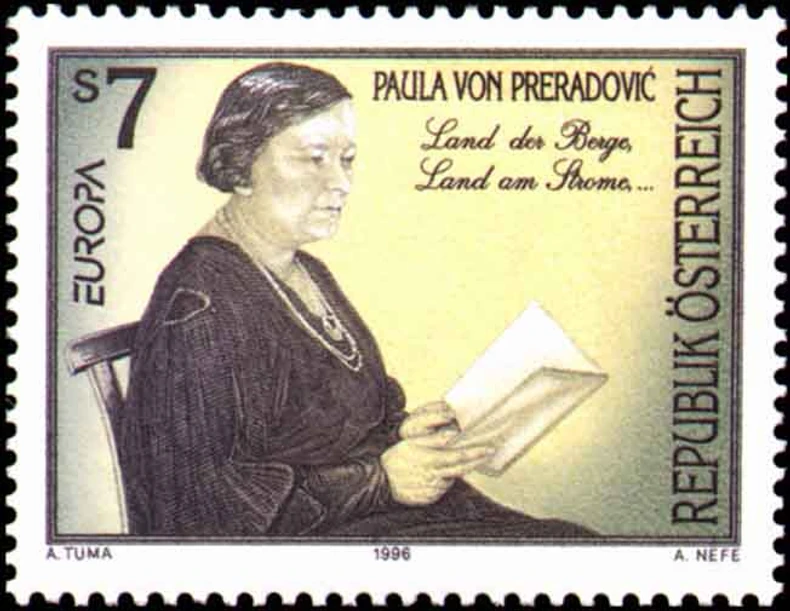 U znak počasti, austrijska Pošta je 1996. godine izdala poštansku marku s likom Paule fon Preradović i naslovom himne.