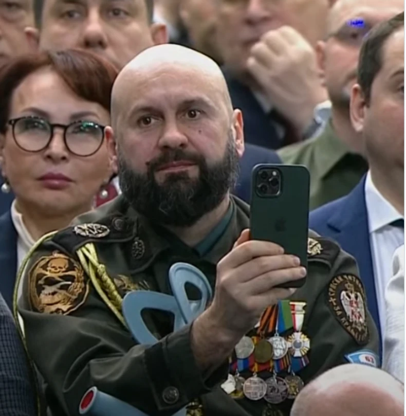 Ruski predsednik Vladimir Putin održao je danas svoj godišnji govor o stanju nacije ispred ruskog parlamenta, u kojem je između ostalog tvrdio da su rat u Ukrajini podstakli Zapad i „kijevski režim“. Pored ruskih predstavnika, govoru su prisustvovali i brojni gosti, a među njima se istakao muškarac sa štakama obučen u vojnu uniformu sa brojnim odlikovanjima i četničkim simbolom na rukavu.