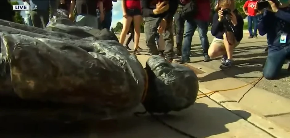 Vojnici državne patrole, sa šlemovima, koji obezbeđuju kompleks Kapitola, stajali su na distanci, ali nisu pokušali da zaustave demonstrante, koji su kasnije proslavili rušenje statue pevajući indijanske pesme i svirajući bubnjeve. Vojnici su potom formirali liniju kako bi zaštitili srušenu statuu da bi ona mogla da bude uklonjena.
