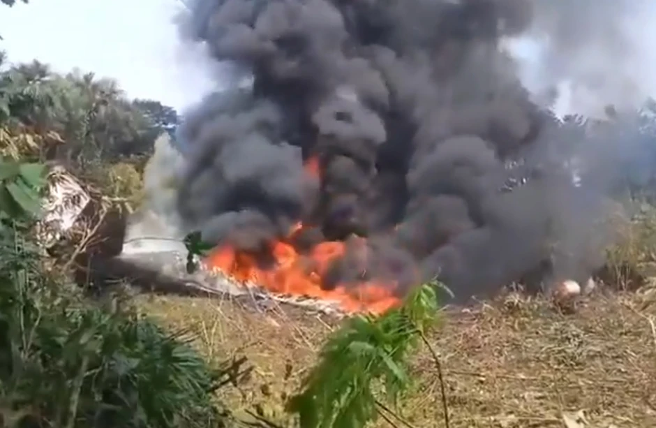 Video snimci i fotografije sa mesta nesreće prikazuju požar u ruralnom području gde je avion pao, dok nekoliko ljudi pokušava da dođe do povređenih i ugasi požar.