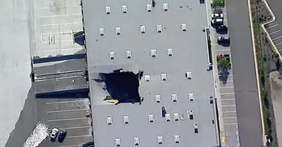 Televizijski snimci pokazuju veliku rupu na krovu zgrade istočno od Los Anđelesa.